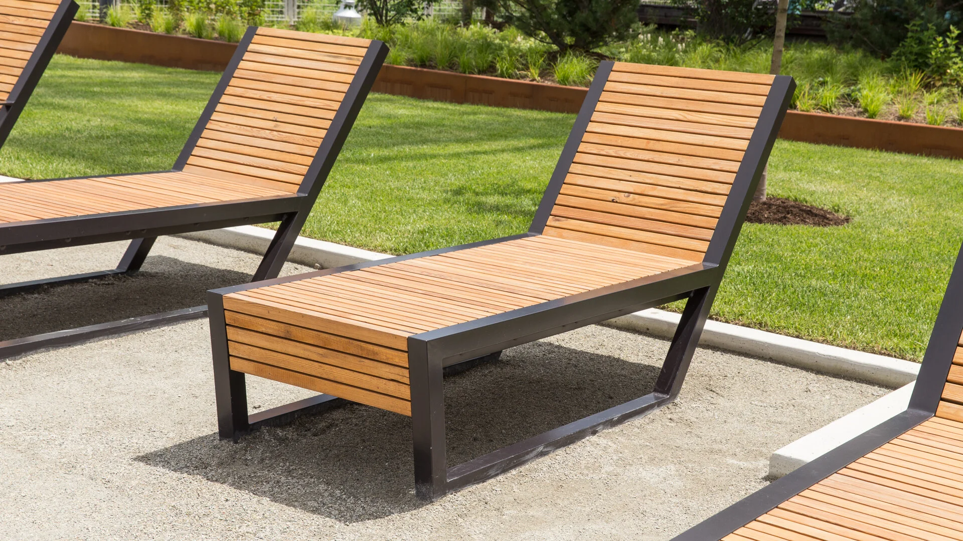 Located on the site of the former Domino Sugar refinery in Williamsburg, Brooklyn's newest waterfront park serves as a tribute to the history of this diverse neighborhood. The design included over 1,000 linear feet of custom benches, incorporating charging stations and wireless access points within powder-coated aluminum bases. All 60 outdoor pieces featured wood slats made from reclaimed antique heart pine beams salvaged from the 1882 refinery building.